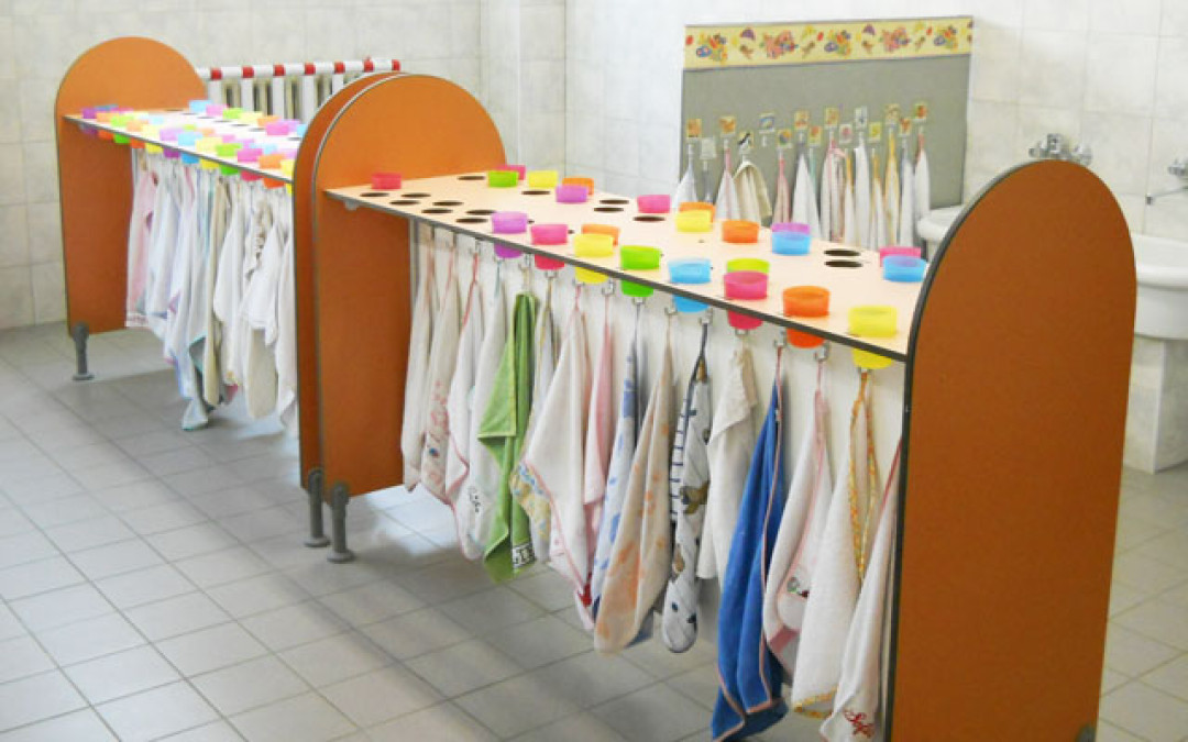 From a very young age, children learn to have their own space where they can put the things they need. Ges Group has designed a structure for schools to hold the glass and towels of each one. In HPL stratified laminate, it is equipped with clothes hooks and shelf.