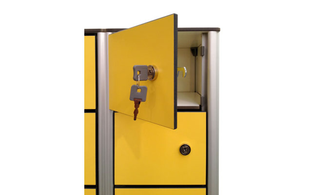 5 columns, 8 compartments each for a total of 40 boxes: these are the numbers of Ges Group safety deposit boxes. They are particularly useful in changing rooms in gyms and swimming pools, but also companies, hospitals and campsites, where the user can secure their personal items in total safety. The structure is made from laminate panels and silver anodised aluminium profiles, and has a minimalist but colourful design, given the wide range of colours available to distinguish each box.