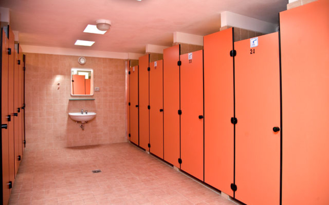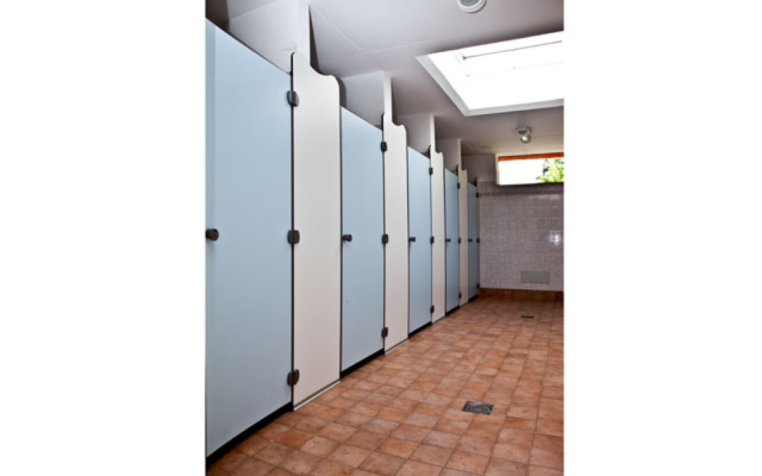 To separate showers, WC boxes and changing rooms Ges Group has designed the AG/S modular walls, with rounded edges and corners. In 14 mm solid stratified laminate (HPL), the panels stand on stainless steel and grey nylon raised feet. The excellent quality materials used grant fast installation, they can be totally disinfected, are maintenance free and make cleaning the rooms easier.