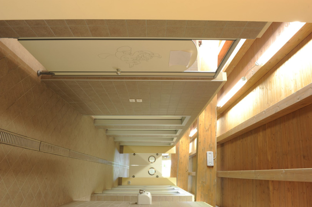 GES Group makes small cabins to be used as changing rooms for little ones. The co-extruded rigid / soft PVC seals allow the complete frontal coplanarity of the structure, while the self-closing, self-lubricating hinges allow the automatic closing of the door. The absence of a handle or any opening knob prevents unpleasant injuries, the door is opened with a simple slot.
