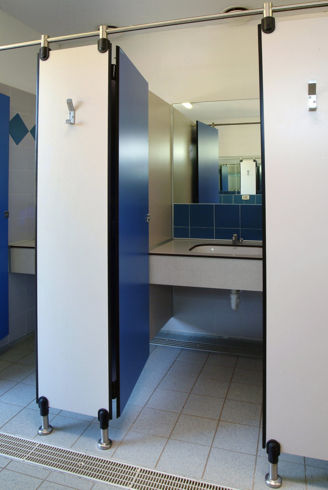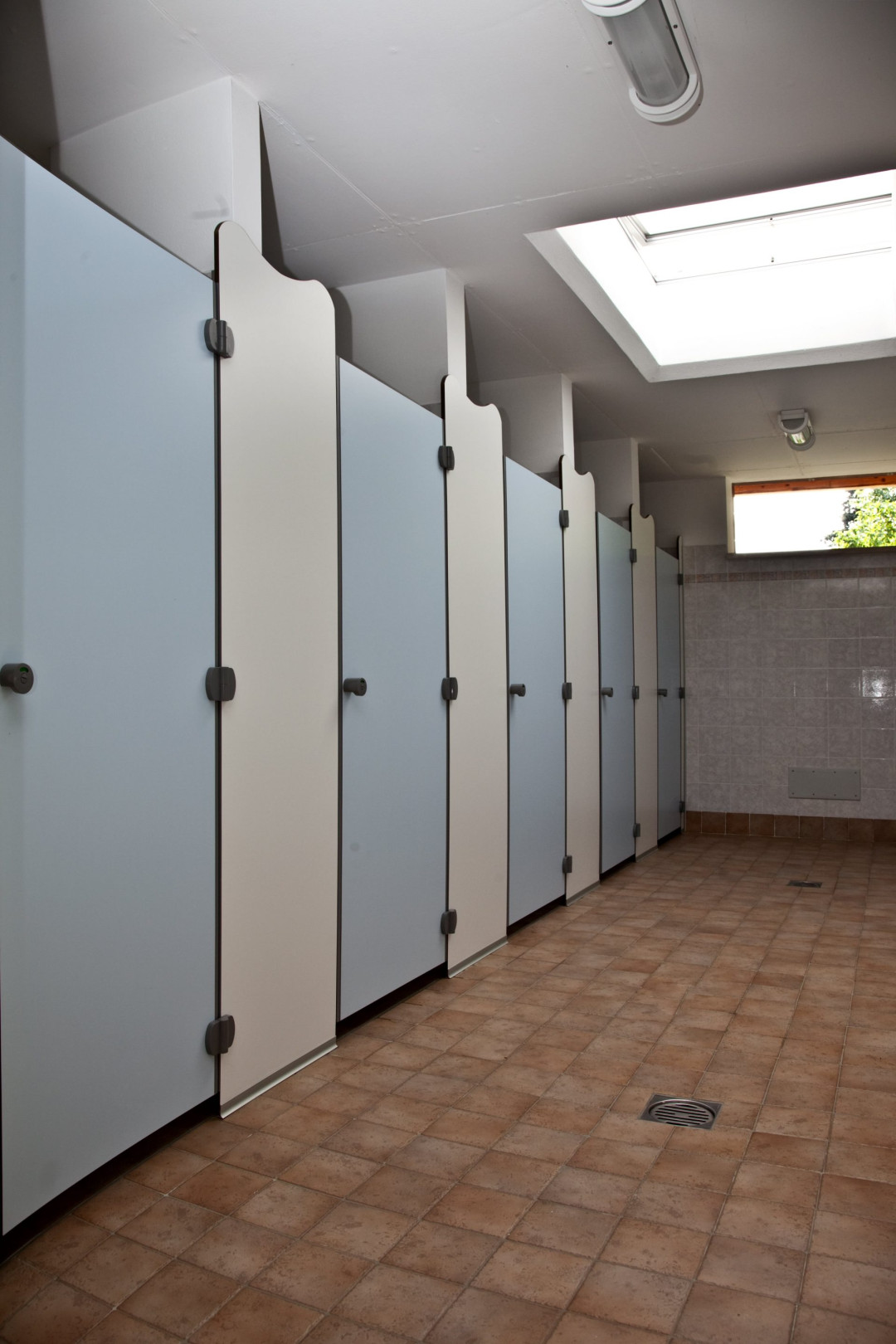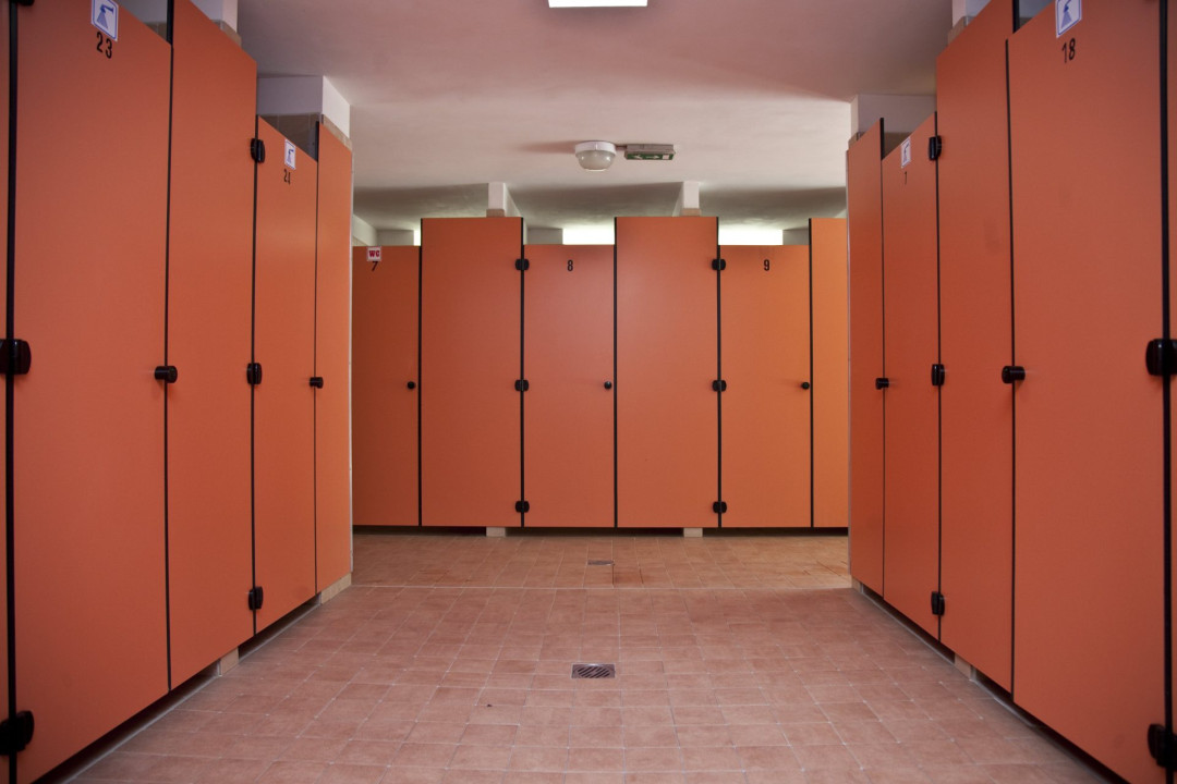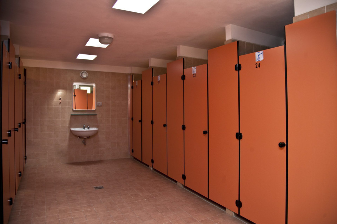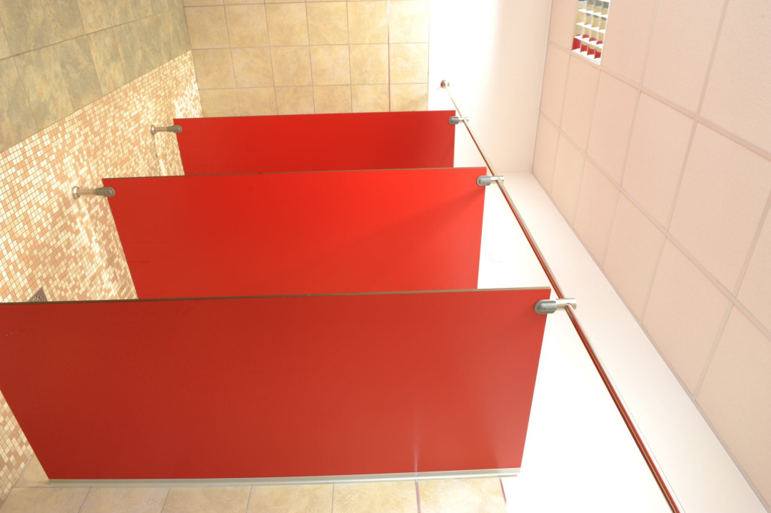 Pour séparer les douches, les cabines de toilettes et les vestiaires, Ges Group propose des cloisons modulaires AG/S à chants biseautés et coins arrondis. Réalisés en stratifié haute pression massif (HPL) de 14 mm, les panneaux s’élèvent sur des pieds de rehaussement en acier inoxydable et en nylon gris. Une installation rapide, une hygiène totale, un nettoyage facile des locaux et l’absence d’entretien caractérisent la matière première de haute qualité.