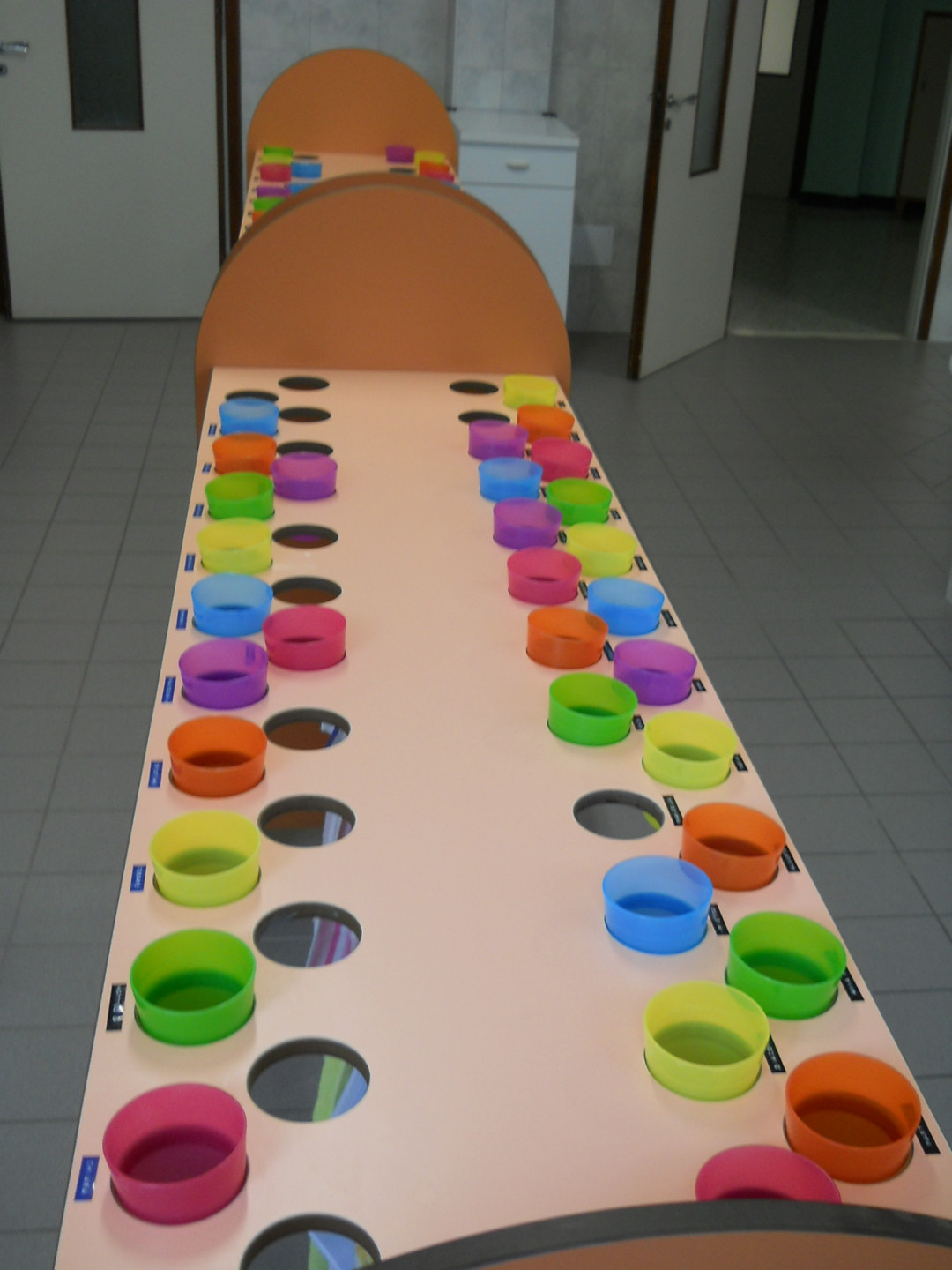Les enfants apprennent dès leur plus jeune âge à disposer de leur propre espace pour y ranger des objets utiles. Ges Group a donc décidé de produire une structure pour les écoles qui accueillerait les verres et les serviettes de tous les enfants. En stratifié haute pression, le produit est équipé d’un porte-manteau et d’une étagère.