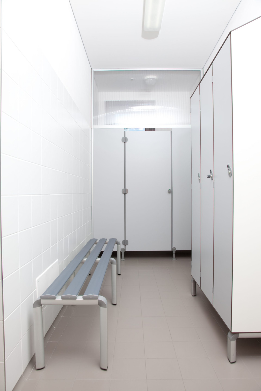 Questo accorgimento permette quindi ai pannelli superiori di agganciarsi ai pannelli sottostanti in laminato o in policarbonato, per chiudere le cabine fino al soffitto.