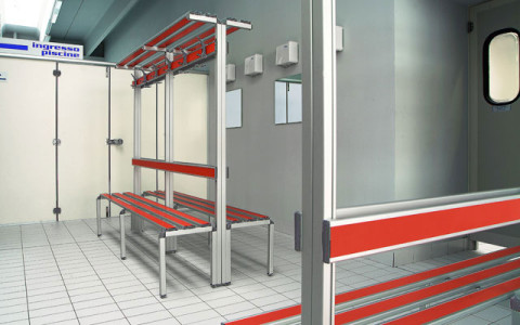 L’armadietto con appendice divisoria è realizzato in laminato stratificato di spessore 8 mm, con speciale trattamento antibatterico Sanitized®.