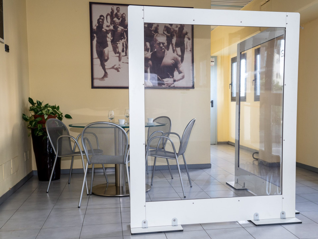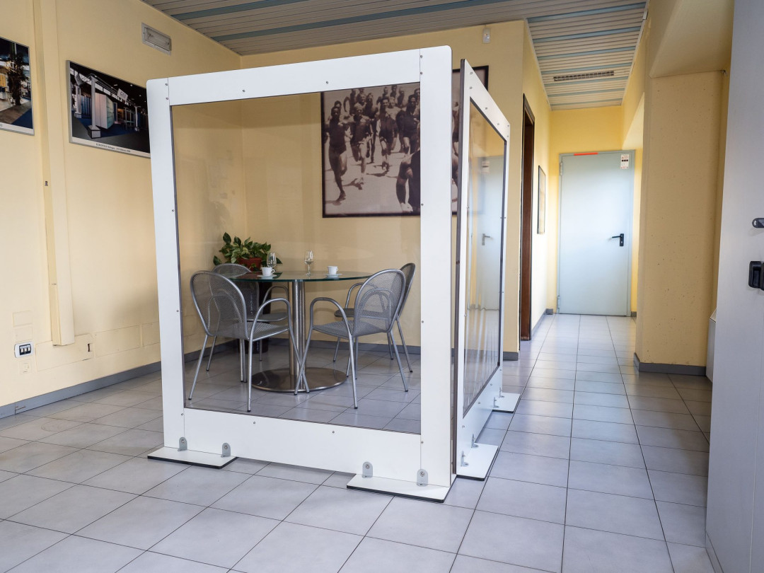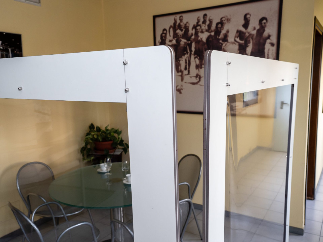 Nuovi separé per ristoranti realizzati con cornice in HPL e finestratura in materiale ignifugo ultratrasparente da 0.5 mm.