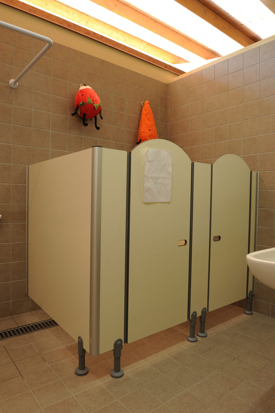 GES Group realizza piccole cabine da utilizzare come spogliatoi per i più piccoli. Le guarnizioni in coestruso di PVC rigido/morbido consentono l’assoluta complanarità frontale della struttura, mentre le cerniere auto-chiudenti e auto-lubrificanti permettono la chiusura automatica della porta. L’assenza della maniglia o eventuale pomolo di apertura evita spiacevoli infortuni, e al suo posto viene collocata un’asolatura per consentire l’apertura della porta.