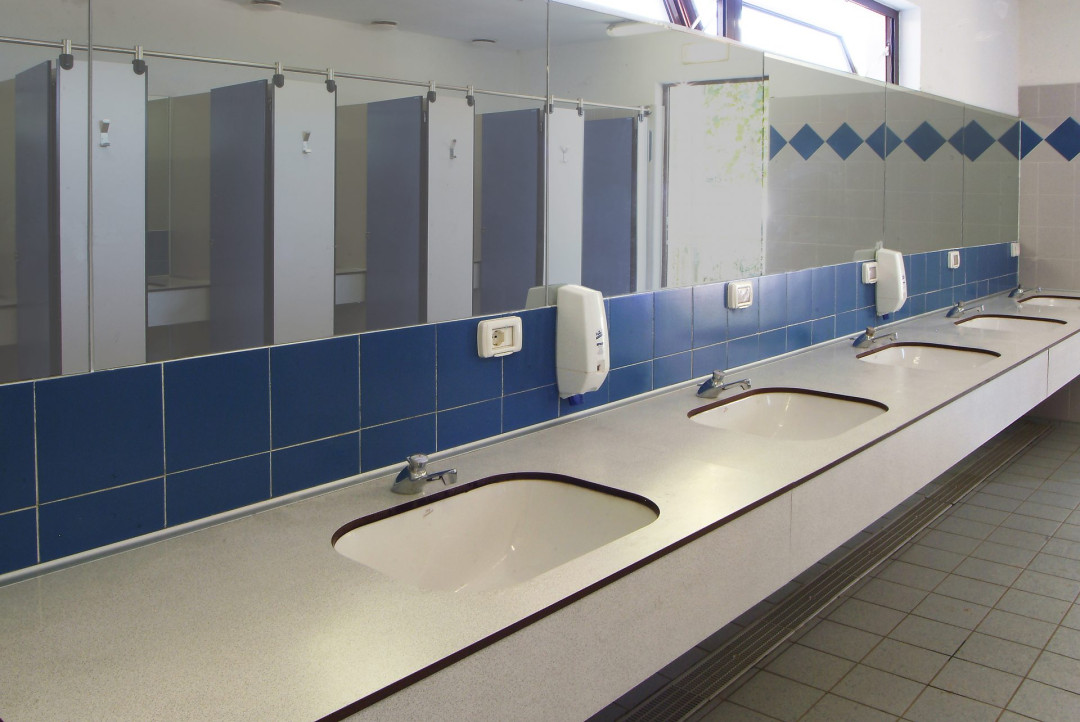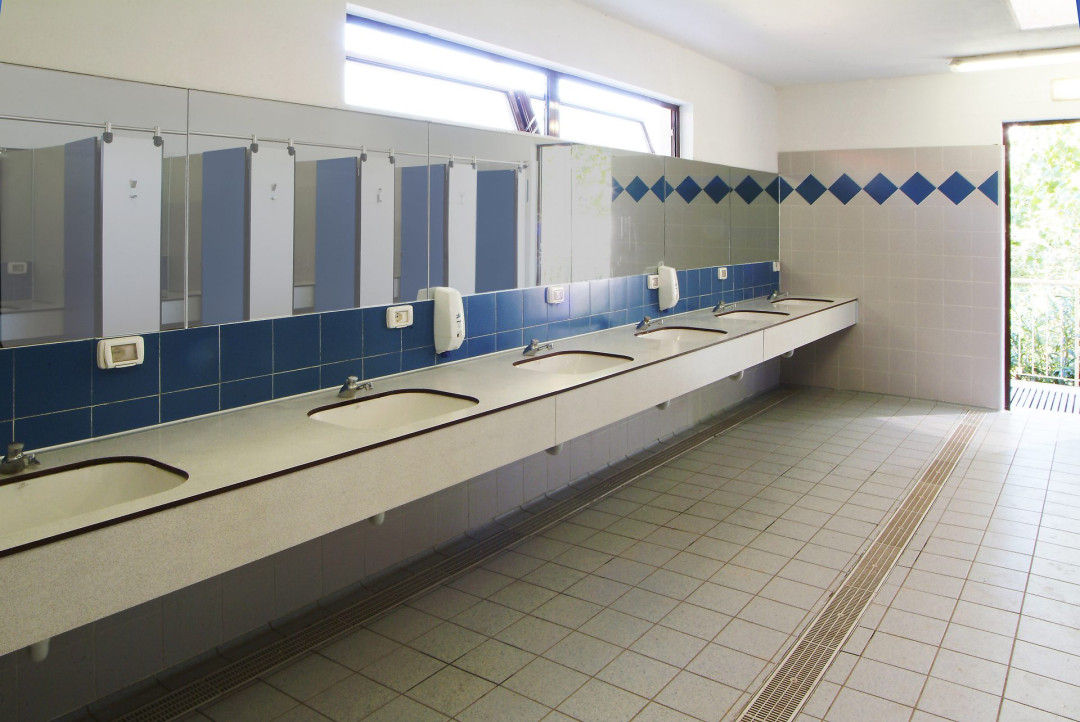 Per arredare i bagni del Camping La Quercia di Lazise, nei pressi di Verona, GES Group ha installato la serie di top lavamani PLTOP A. Il piano di appoggio dei lavandini è caratterizzato da un piano unico con bordi smussati e veletta verticale sotto-top. Il fissaggio del top lavamani alla parete di fondo verticale avviene tramite profilo di alluminio anodizzato e squadrette in acciaio zincato, mentre la fascia del sotto top lavamani è fissato obliquamente per permettere l’utenza anche per i disabili.