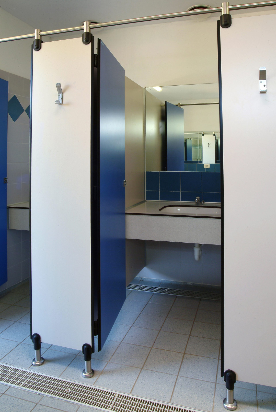 Per separare docce, box wc e spogliatoi, Ges Group propone quindi le pareti modulari serie AG/S con bordi smussati ed angoli arrotondati. Le medesime sono state collocate nelle aree comuni dedicate ai servizi del Camping La Quercia di Lazise, Verona. Realizzati in laminato stratificato massello (HPL) da 14 mm, i pannelli si elevano su piedini di sollevamento in acciaio inox e nylon grigio. Una rapida posa in opera, assoluta sanificabilità, semplificazione della pulizia dei locali e assenza di manutenzione caratterizzano un prodotto di elevato profilo, realizzato con materiali di prima scelta e minuziosa cura dei dettagli.